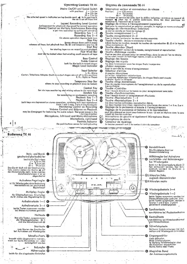Grundig TK46 - Operating Controls Overview