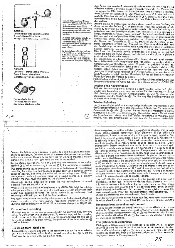 Grundig TK46 - Other Recording Methods; Erase Without Recording; Recording from Telephone