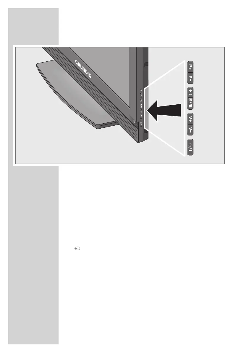 P– P + Switch the television on from standby.