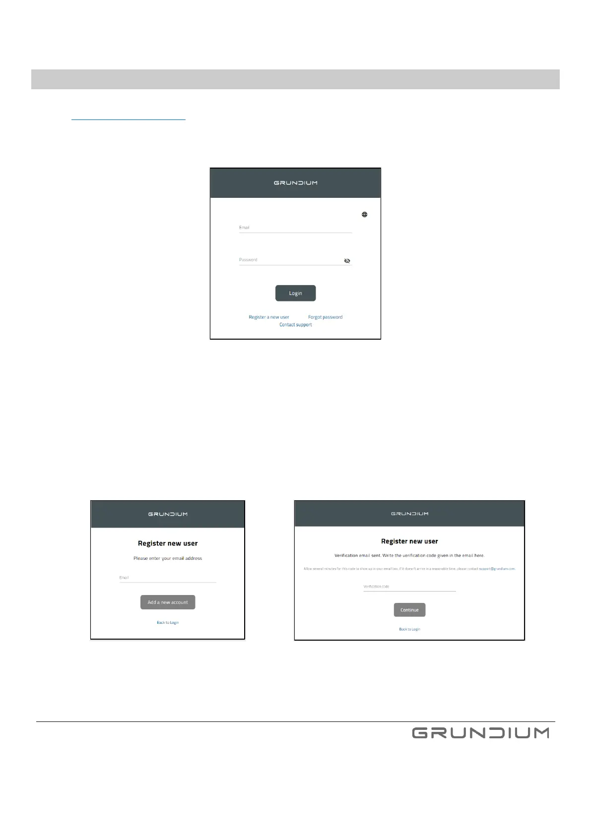 If you already have a user account to Grundium, login with your account details and move directly to chapter 7.3.