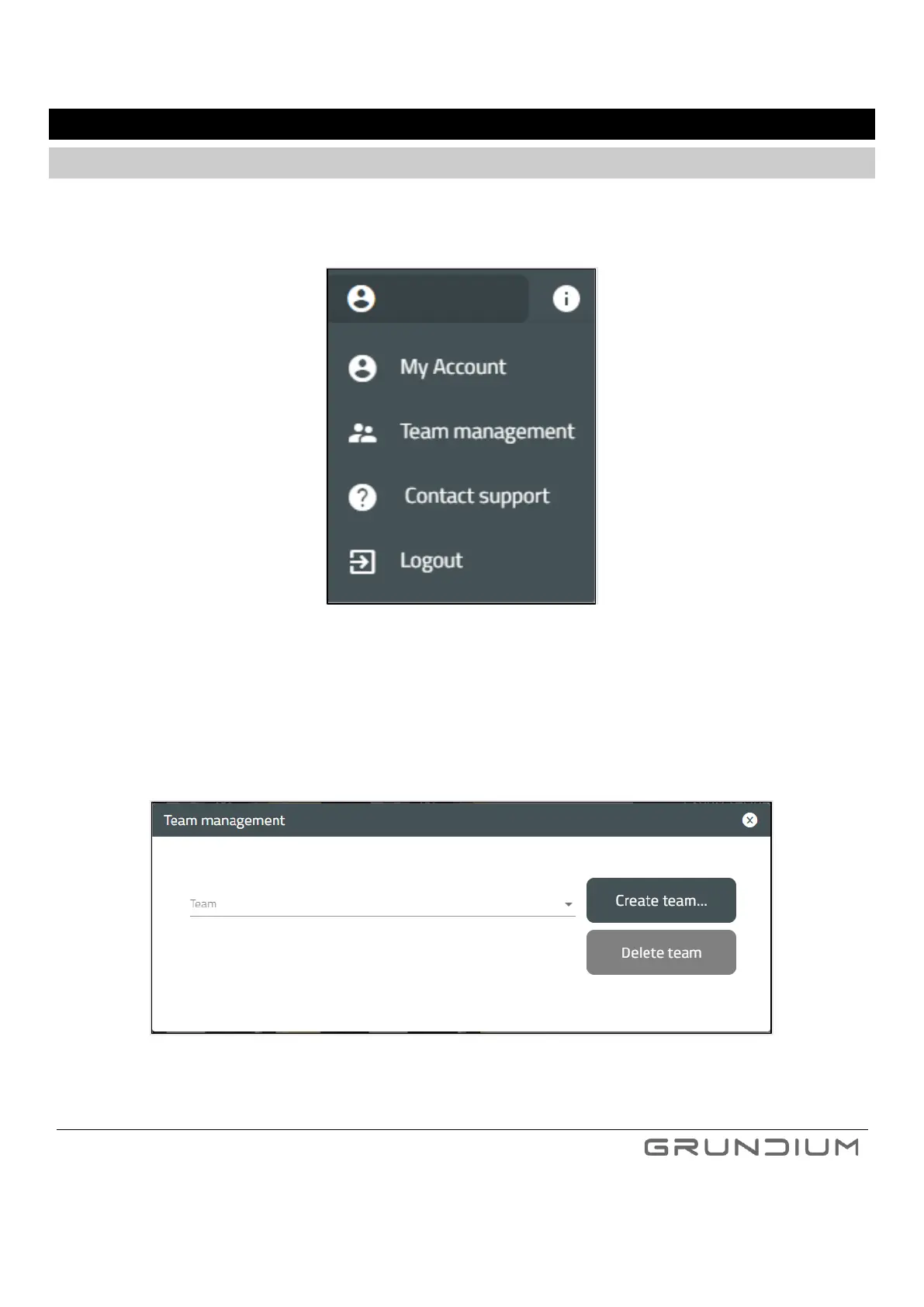 1. Select Team management from the menu under your name in Grundium.net UI, top bar, on the right.
