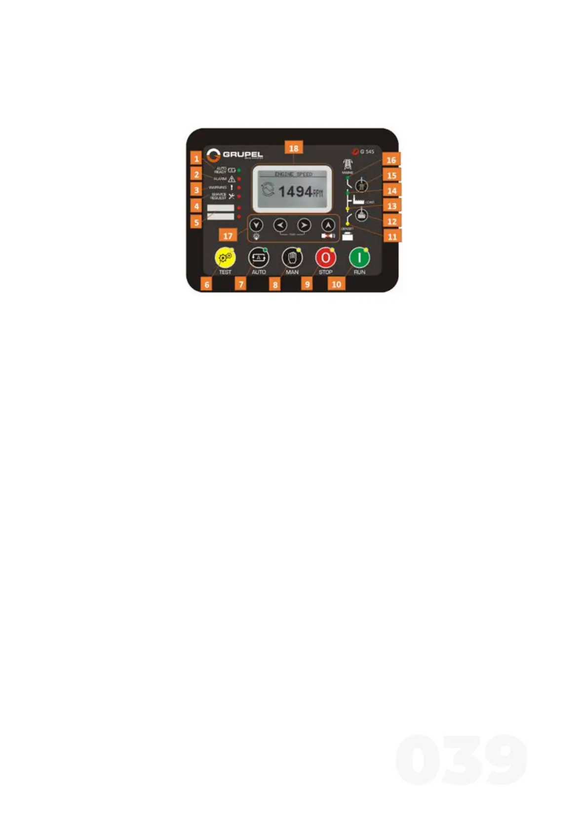 10. Вибір режиму RUN, дозволяє запустити генератор вручну