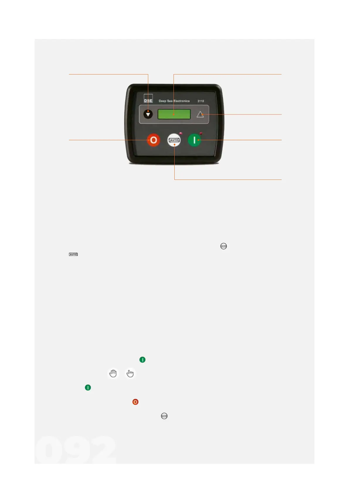 Below we will give an overview of the commands located on the DSE 3110 controller panel.