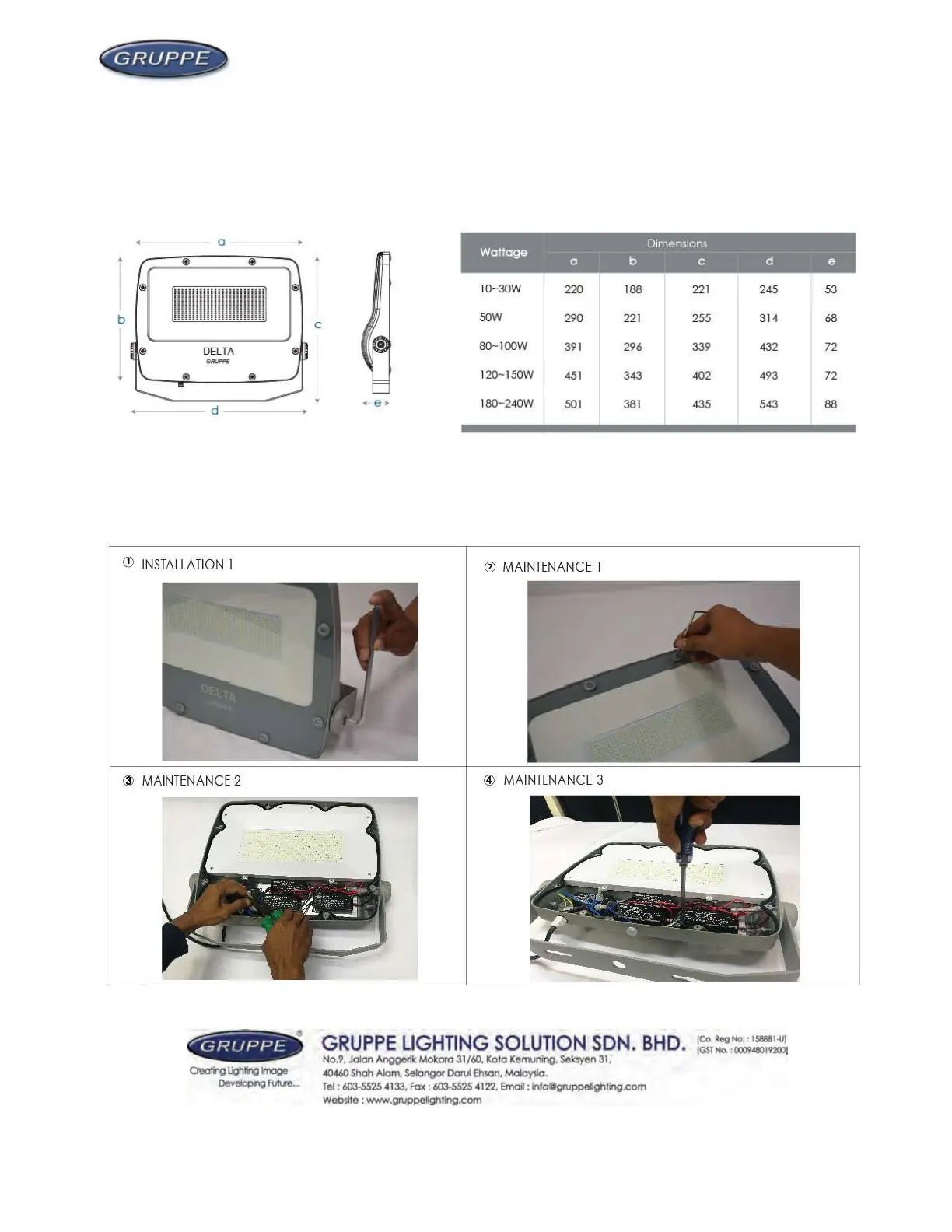Gruppe Delta - Technical Dimensions and Installation; Product Dimensions; Installation Steps