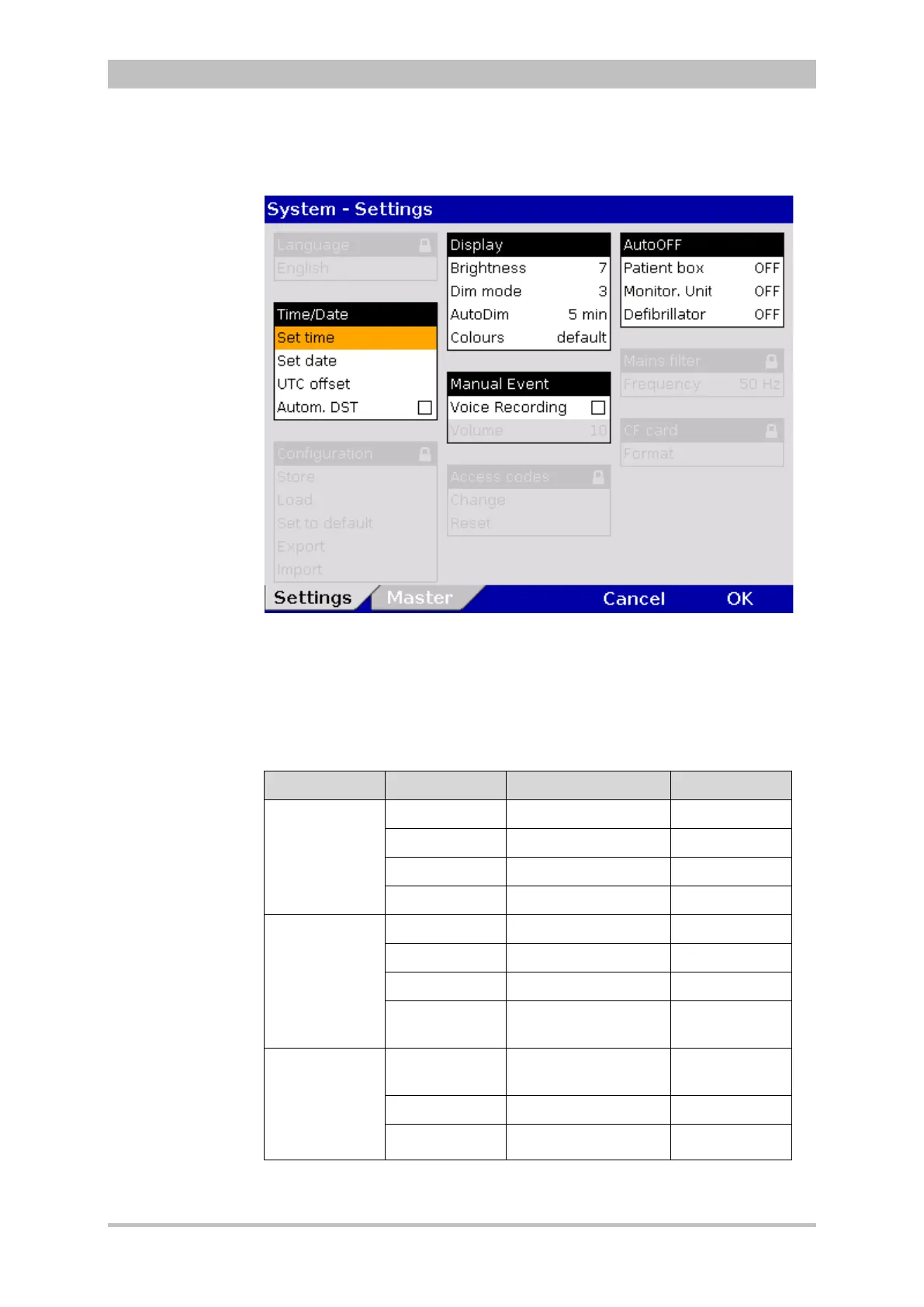 Fig. 7-1 System settings, default user level