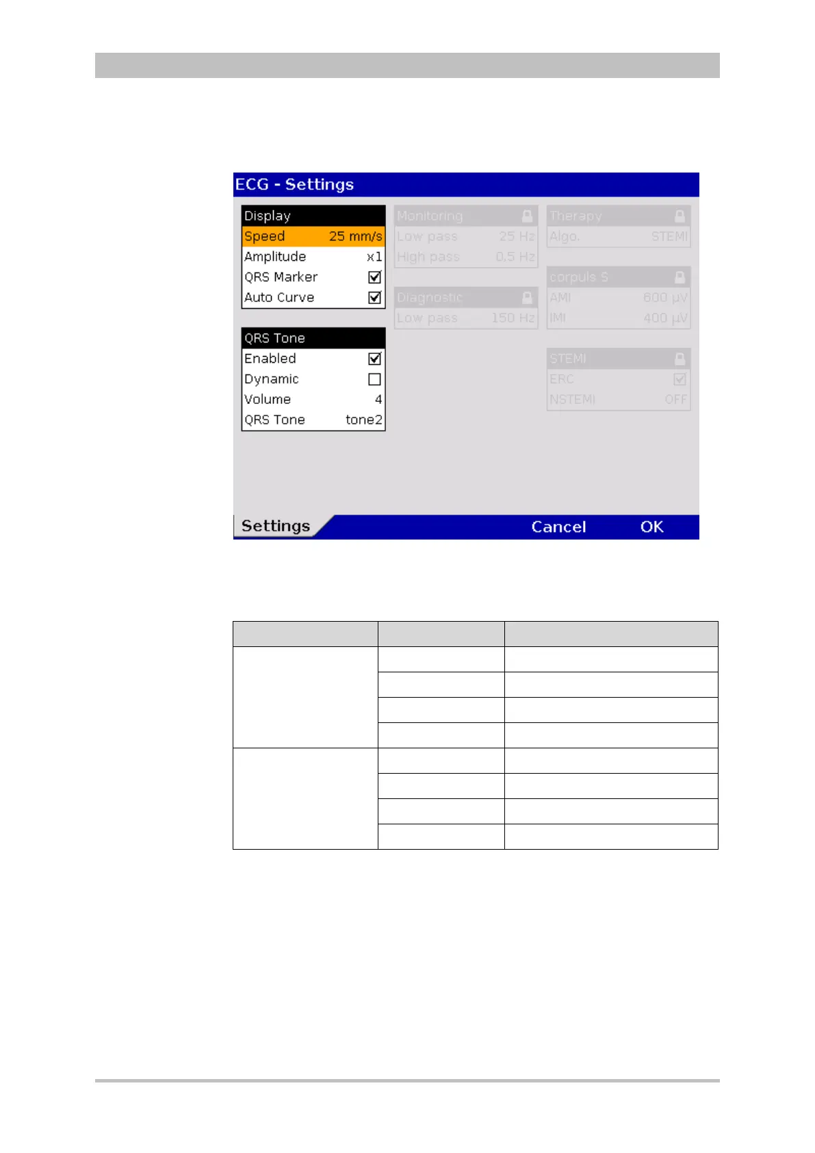 The dynamic QRS tone is only available, if the device is equipped with the SpO
