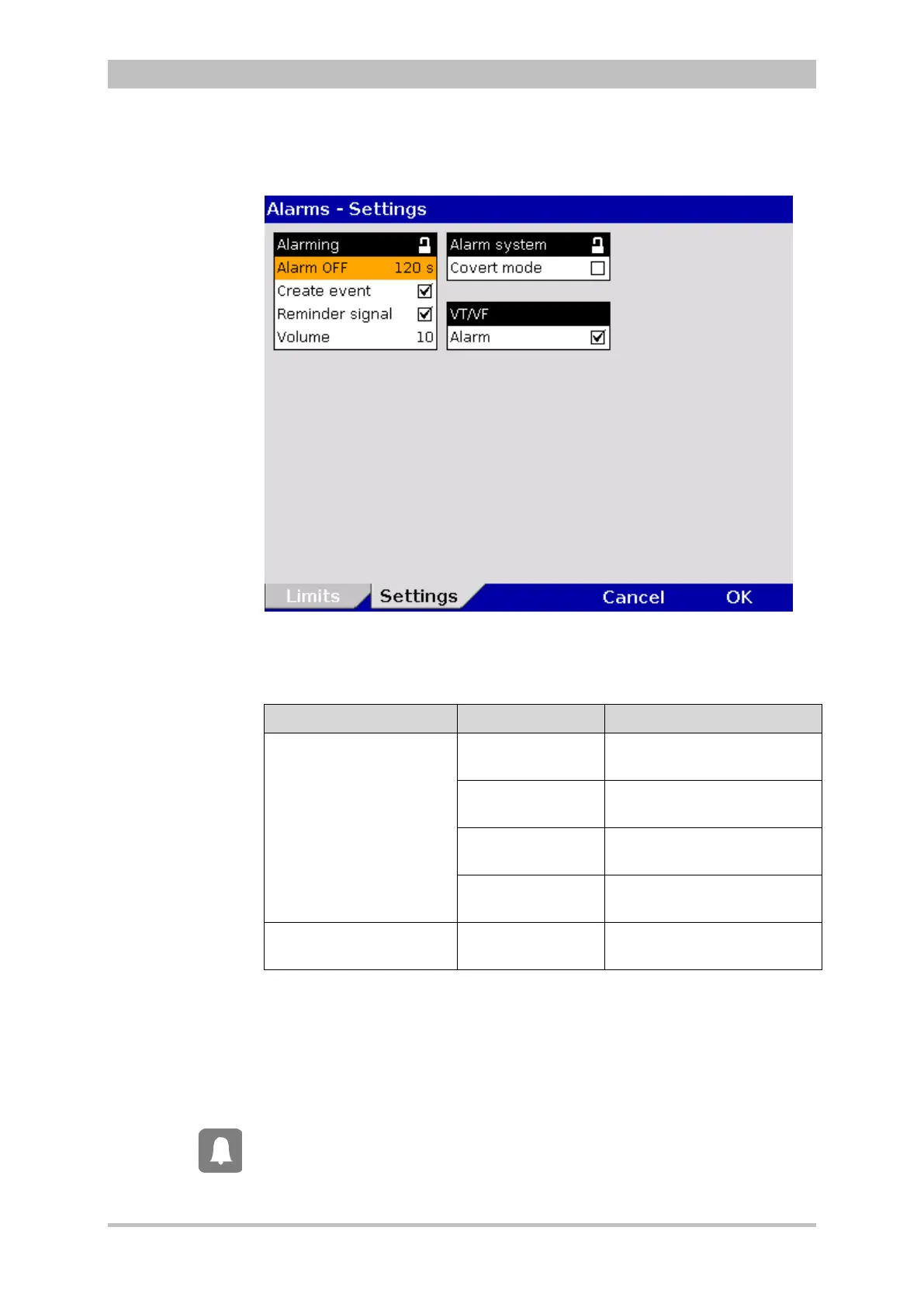 If the Alarm key is pressed for longer than 3 s, physiological alarms can be