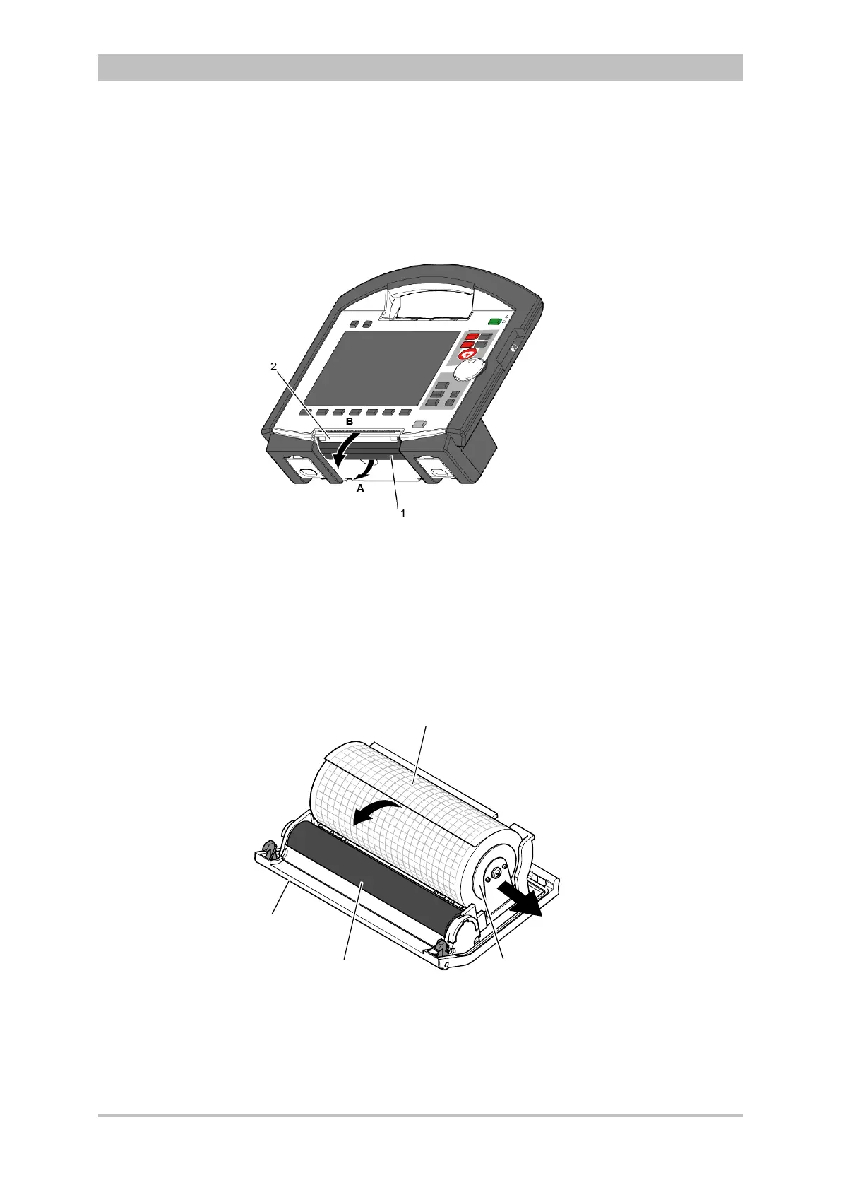 from the defibrillator/pacer, should be placed on a flat surface to load the printer