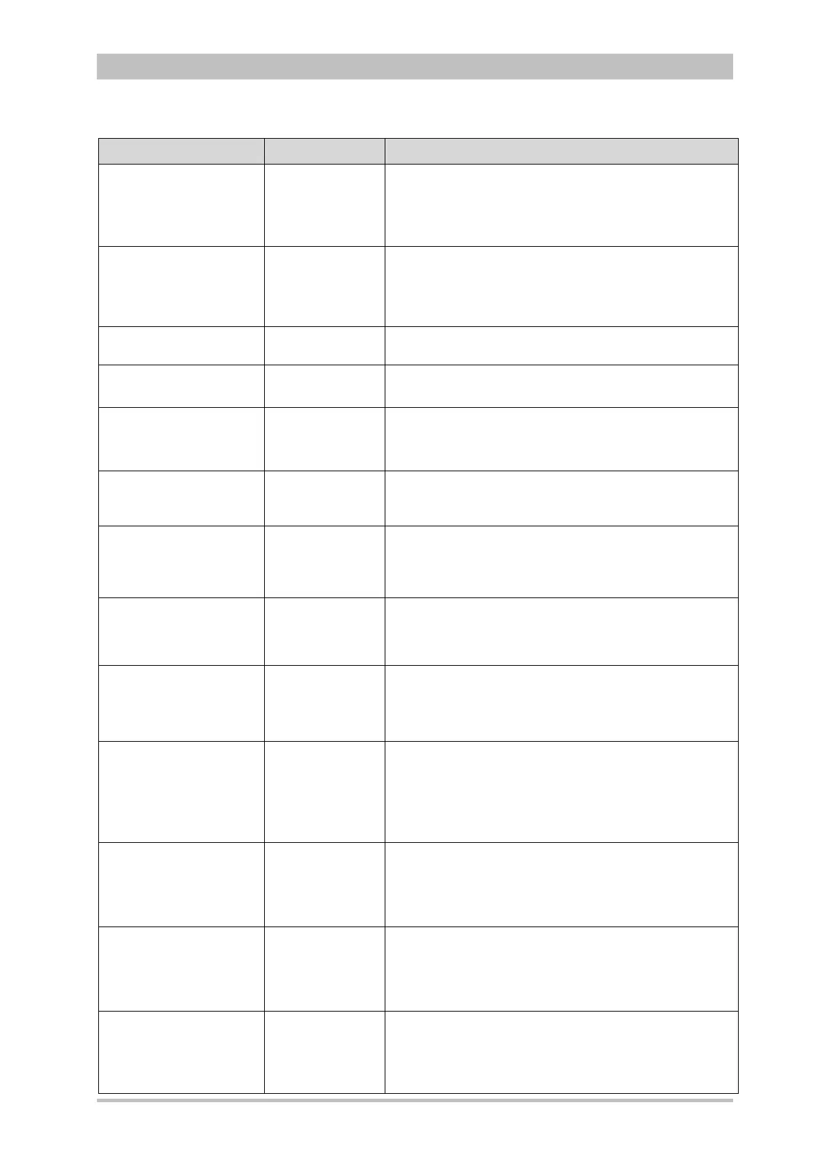 Alarm message Priority Explanation/Measure