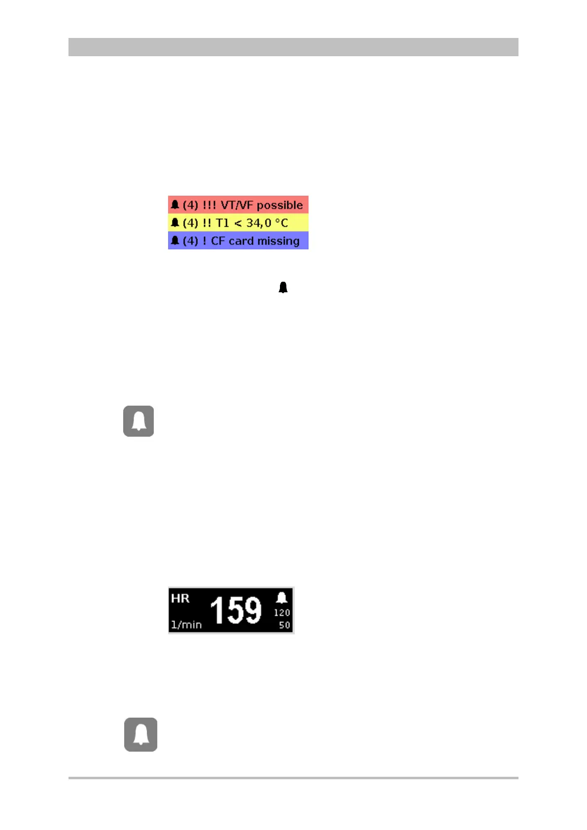 Certain technical alarms are displayed in red type. These alarms cannot be