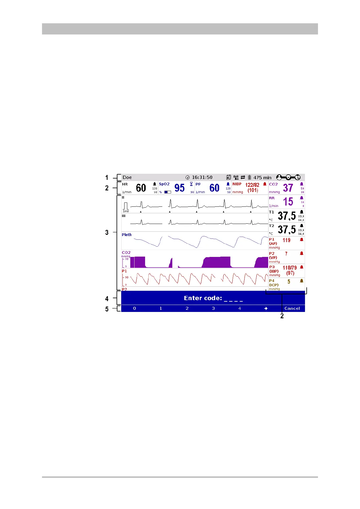 the user interface are displayed, e.g. to enter the PIN code for the OPERATOR