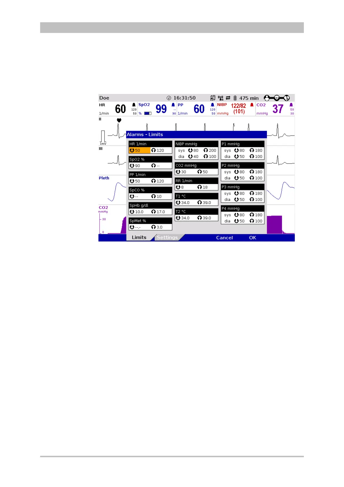 A setting (numerical value, text or symbol) can be modified if