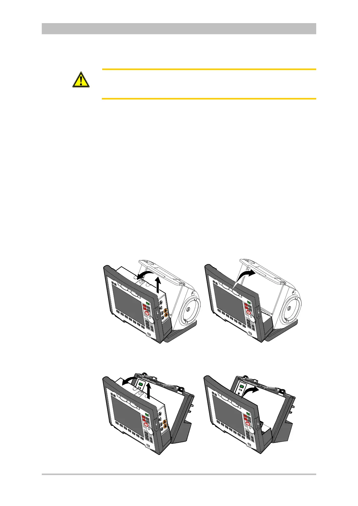 5. Tilt the monitoring unit towards the defibrillator/pacer until the closures at