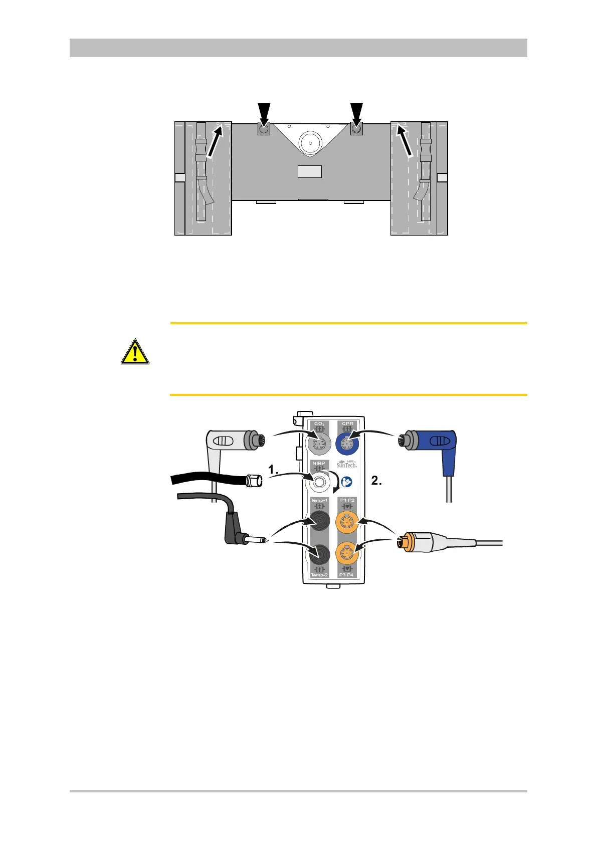 When inserting the sensor cables and ECG cables, make sure that the plugs