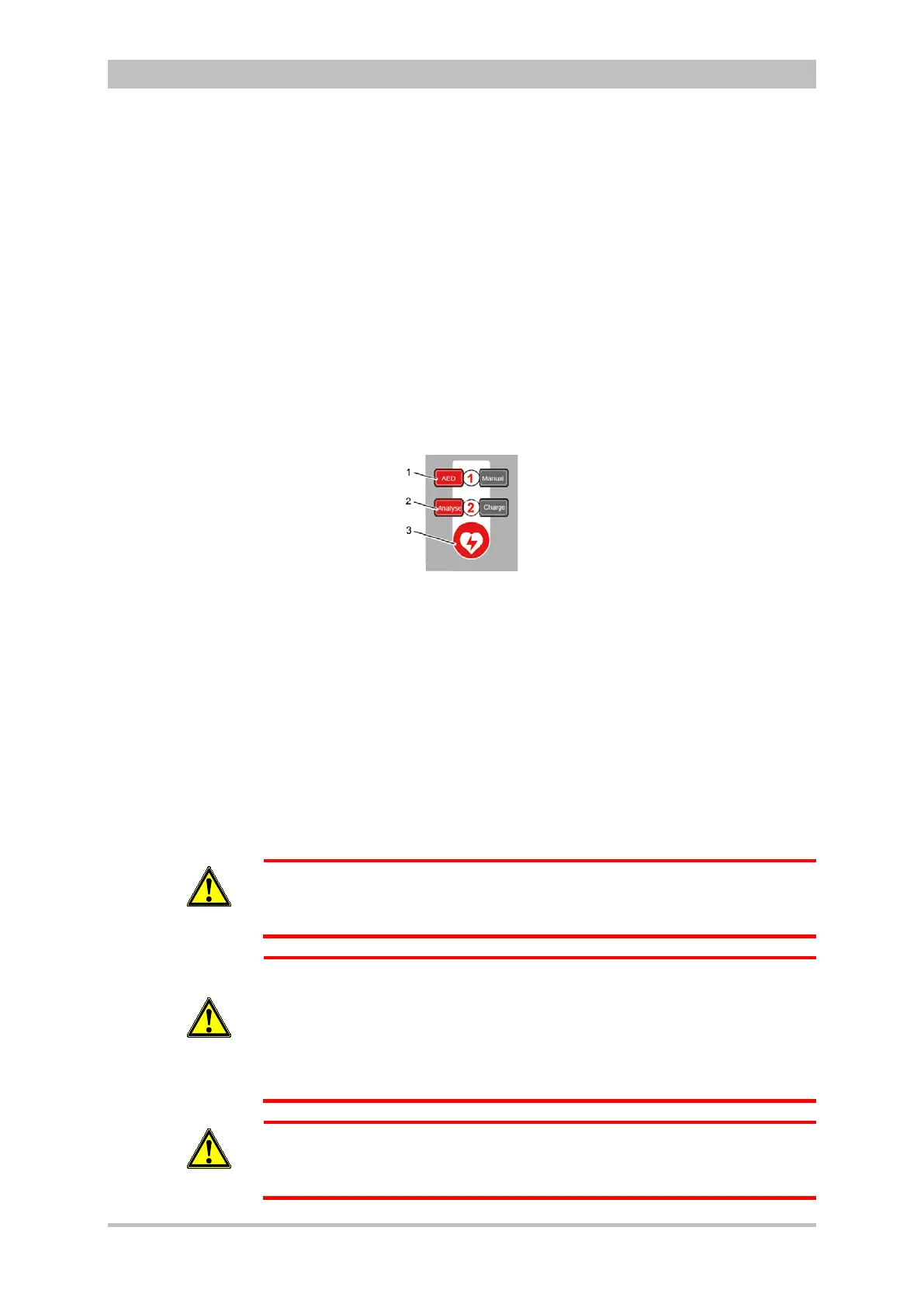 The following keys are available to operate the device in AED mode: