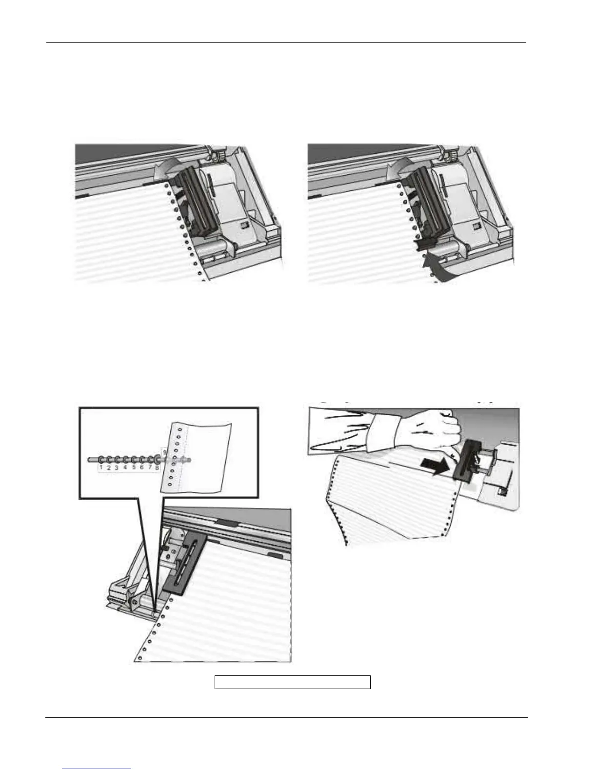5. Insert the paper on the right sprocket pins and