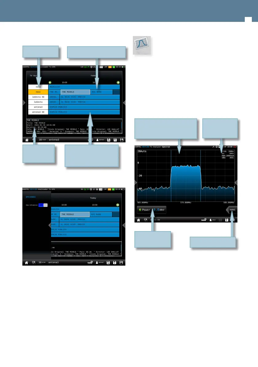 This feature has two screens: spectrum analyser