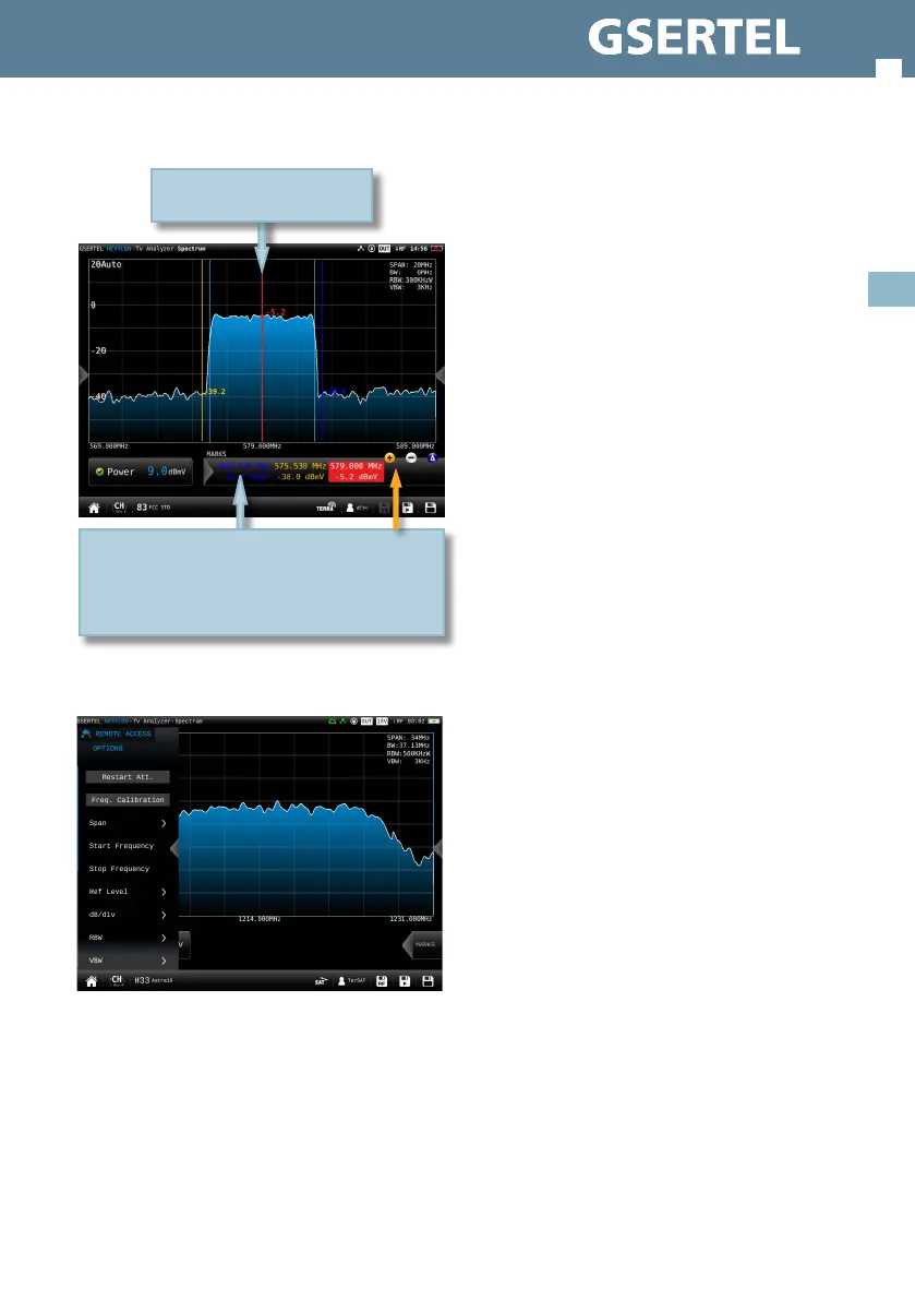 • Span: 100KHz, 1MHz, 5MHz, 10 MHz, 20 MHz, 50