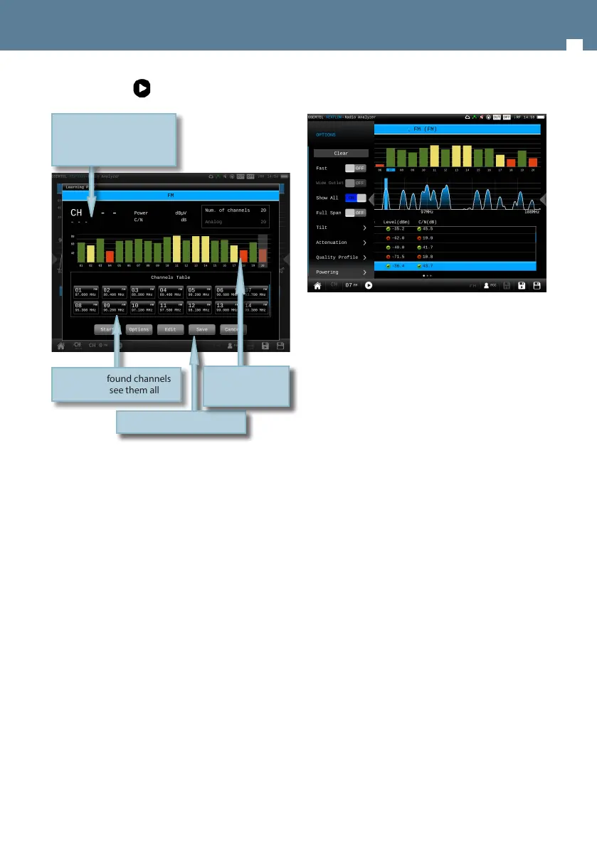Table with found channels
