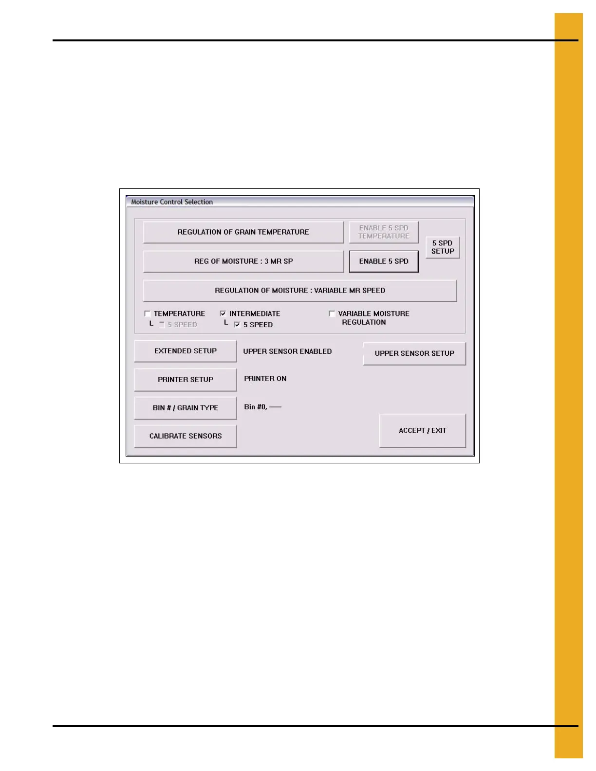 3. Enter 5 Speed moisture regulation mode: SETUP > M/C Setup > ENABLE 5 SPD.