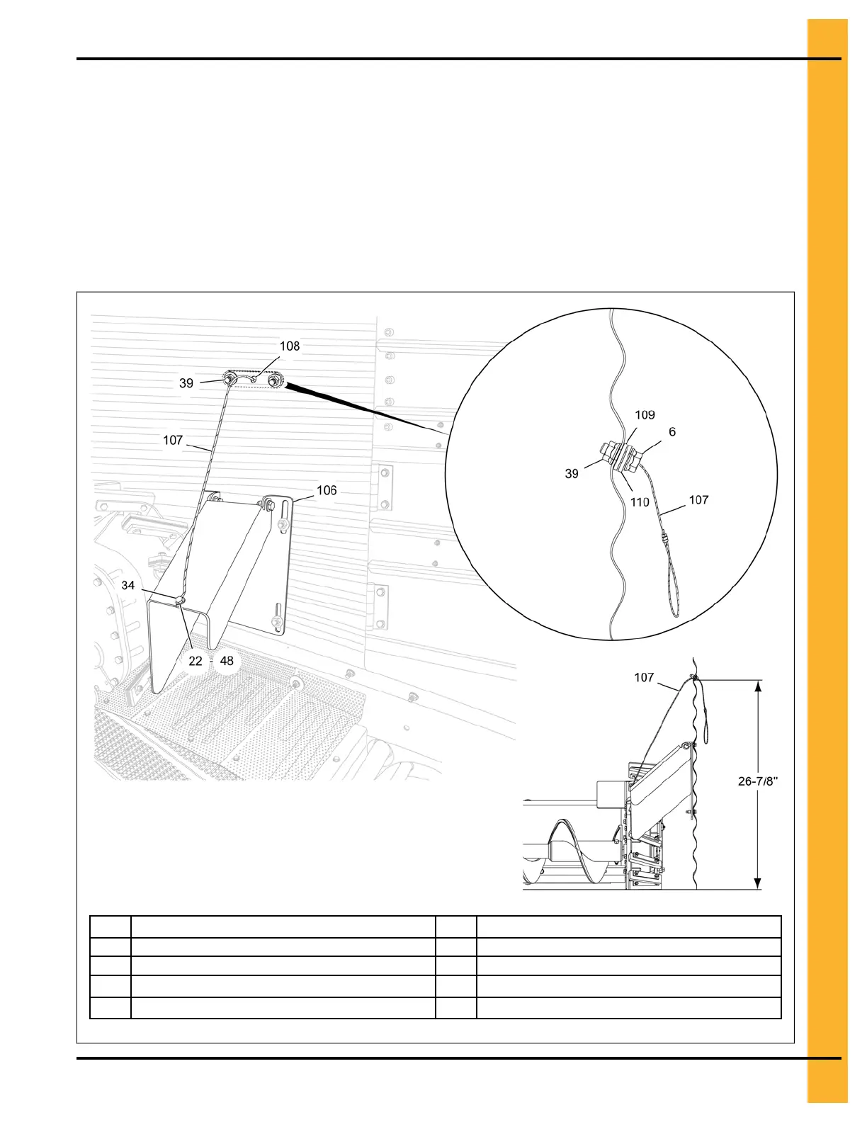 2. Measure approximately 26-7/8" from the bin floor and field drill a 1/2" hole (108) in the sidewall.