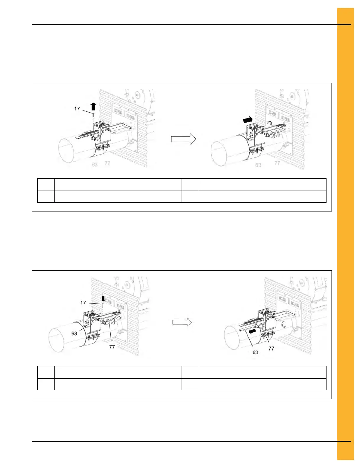 Remove the 5/16" x 1-1/2" HHCS bolt (17) from the center well control rod (63). Rotate the rack and