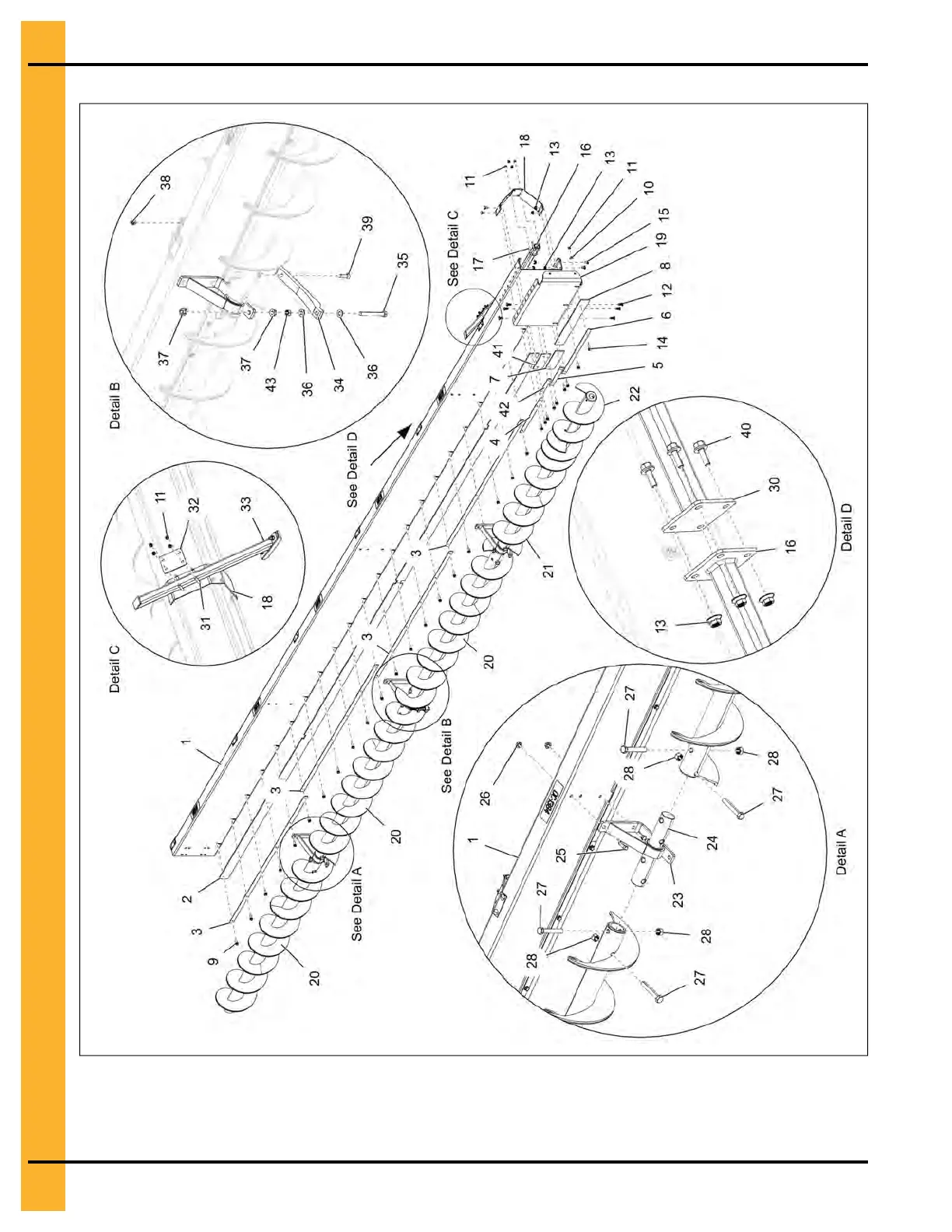 Figure 7-15 Backshield with four augers parts (54' Bins)