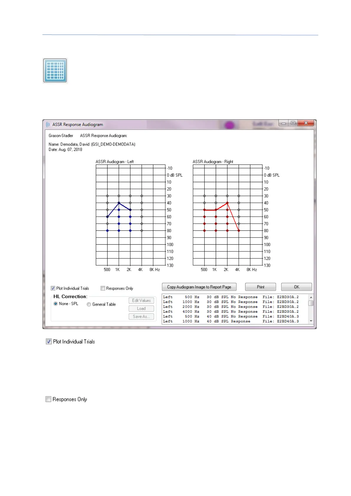 dialog. The response audiogram is generated from the ASSR response