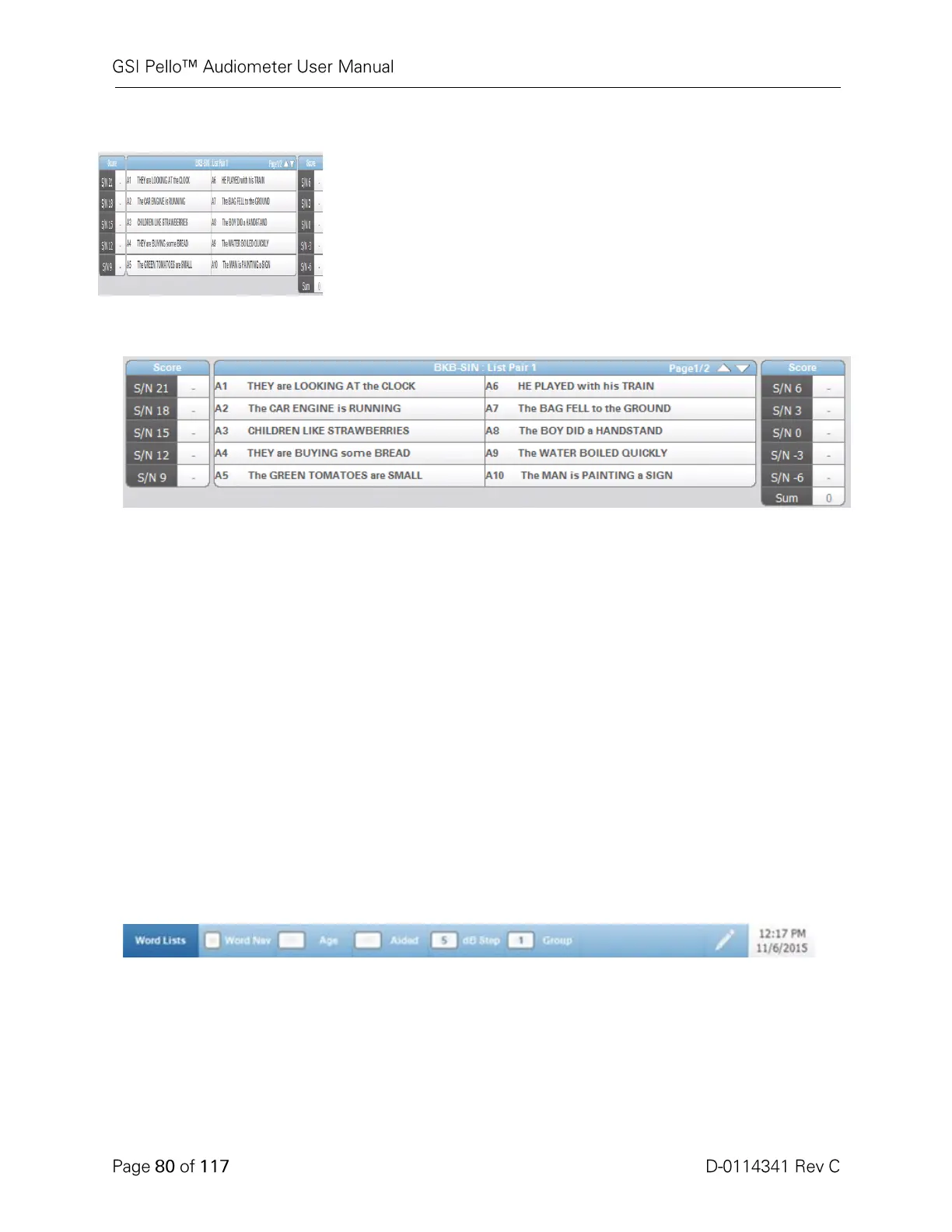 The lower section of the display contains the BKB-SIN sentences. The