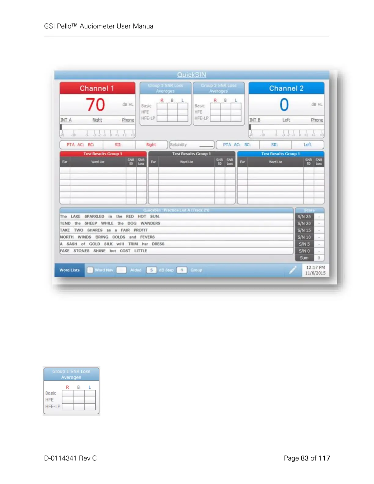 scores. The scores are separated for the ear, group, and QuickSIN sentence type