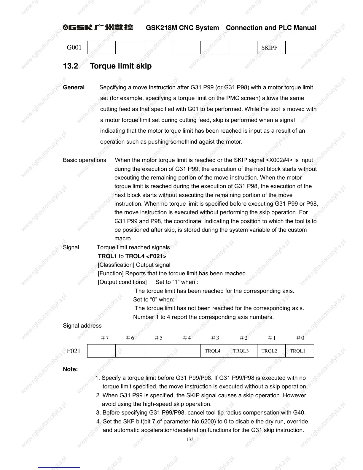 2. When G31 P99 is specified, the SKIP signal causes a skip operation. However,