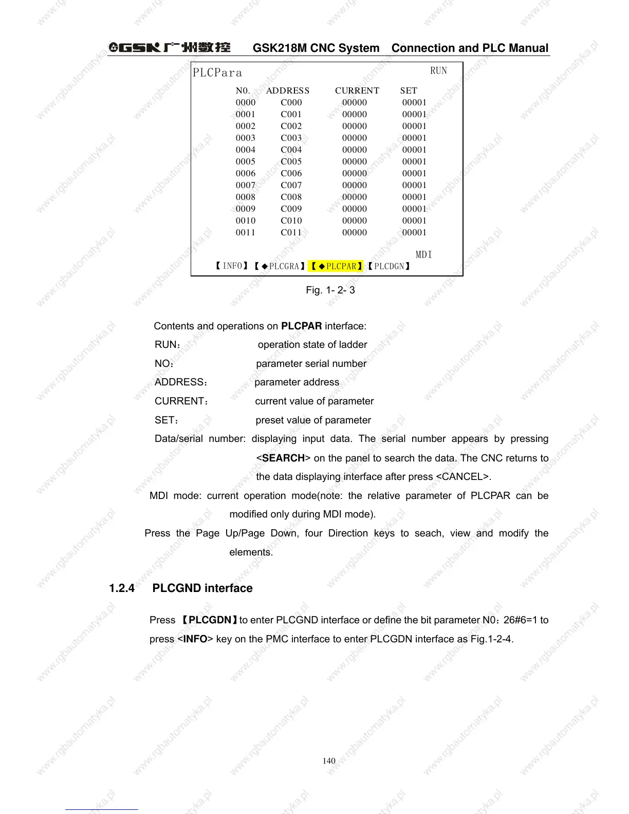 press <INFO> key on the PMC interface to enter PLCGDN interface as Fig.1-2-4.