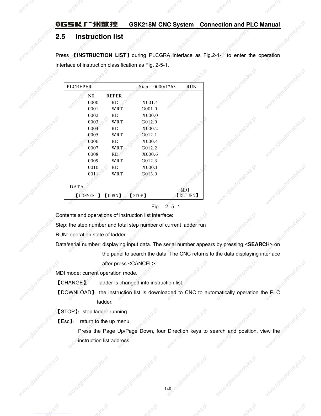 Press 【INSTRUCTION LIST】during PLCGRA interface as Fig.2-1-1 to enter the operation