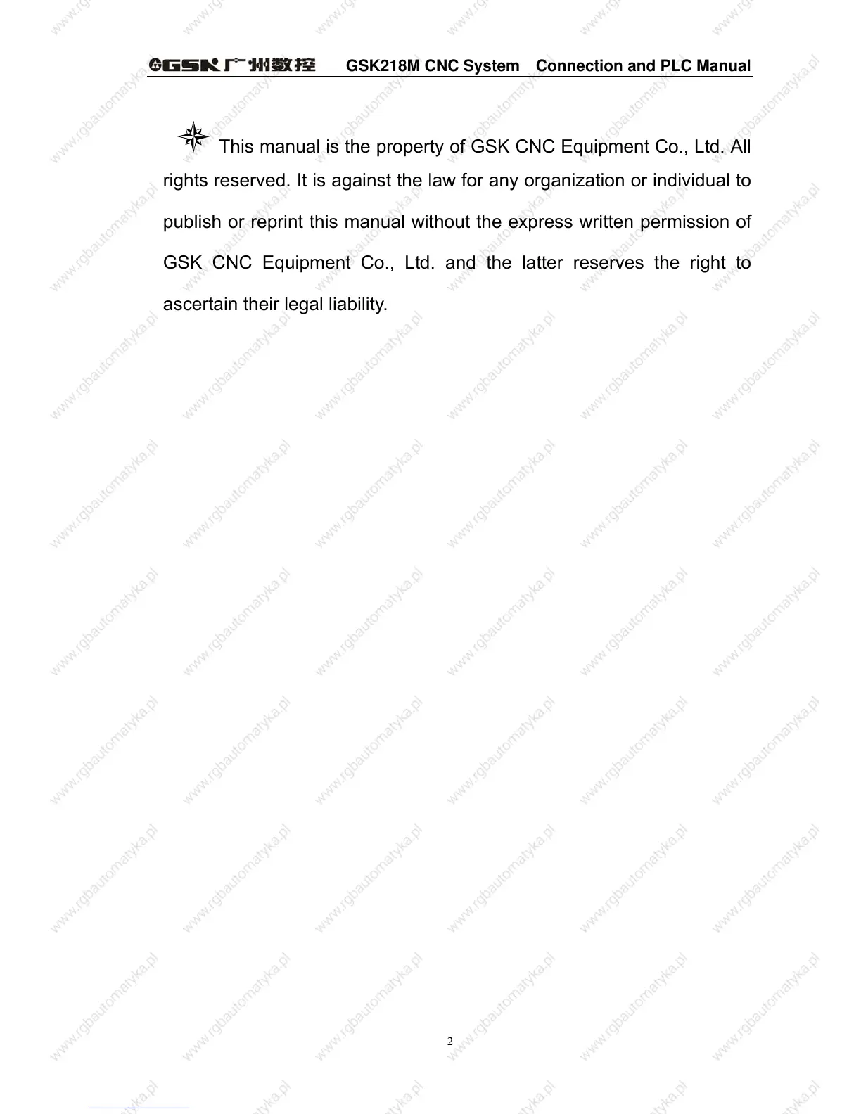 This manual is the property of GSK CNC Equipment Co., Ltd. All