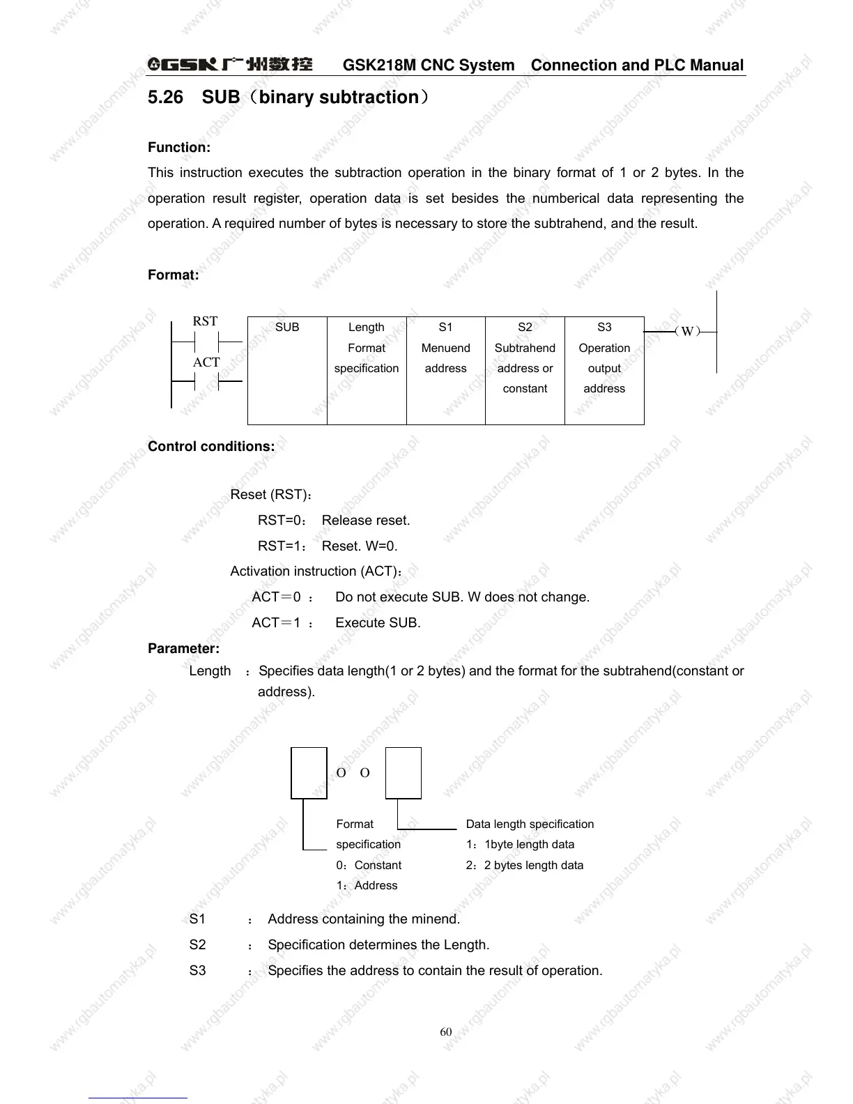 Length :Specifies data length(1 or 2 bytes) and the format for the subtrahend(constant or