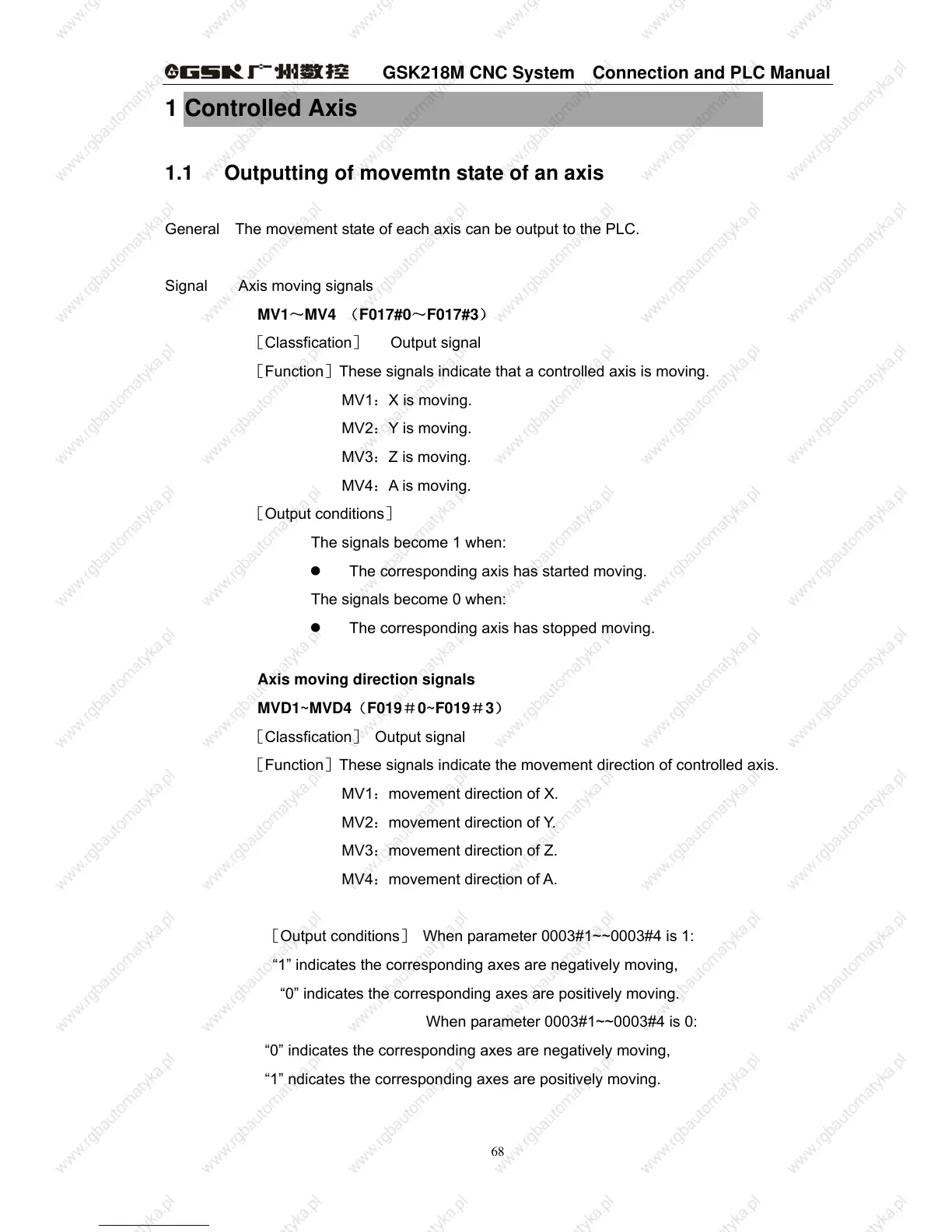 [Output conditions] When parameter 0003#1~~0003#4 is 1: