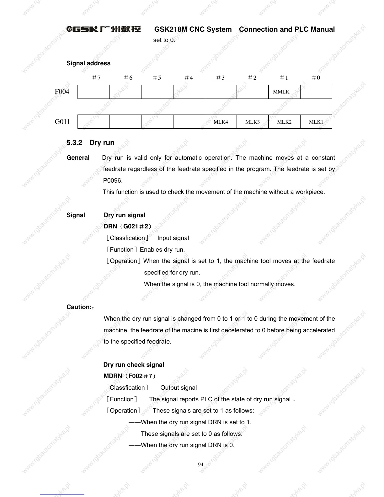[Function] The signal reports PLC of the state of dry run signal.。