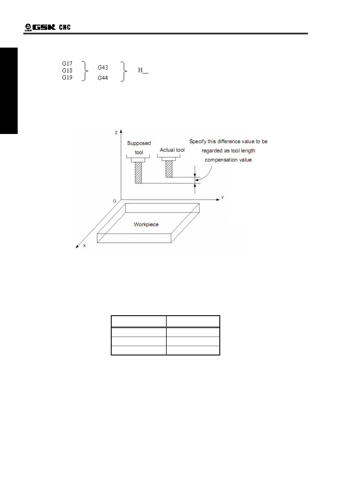 Different offset directions were specified by G43 and G44, the offset number is specified by H code.