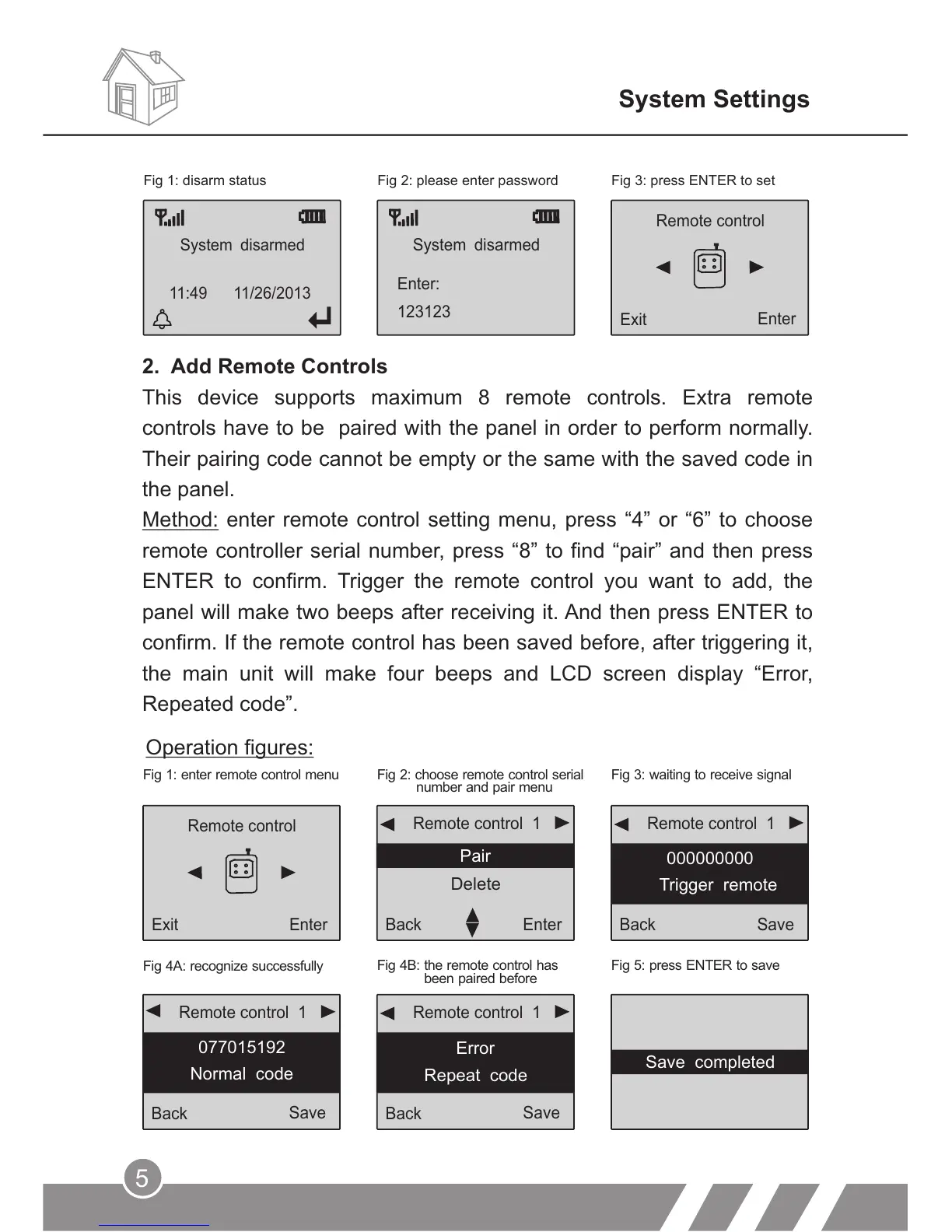 ENTER to confirm. Trigger the remote control you want to add, the