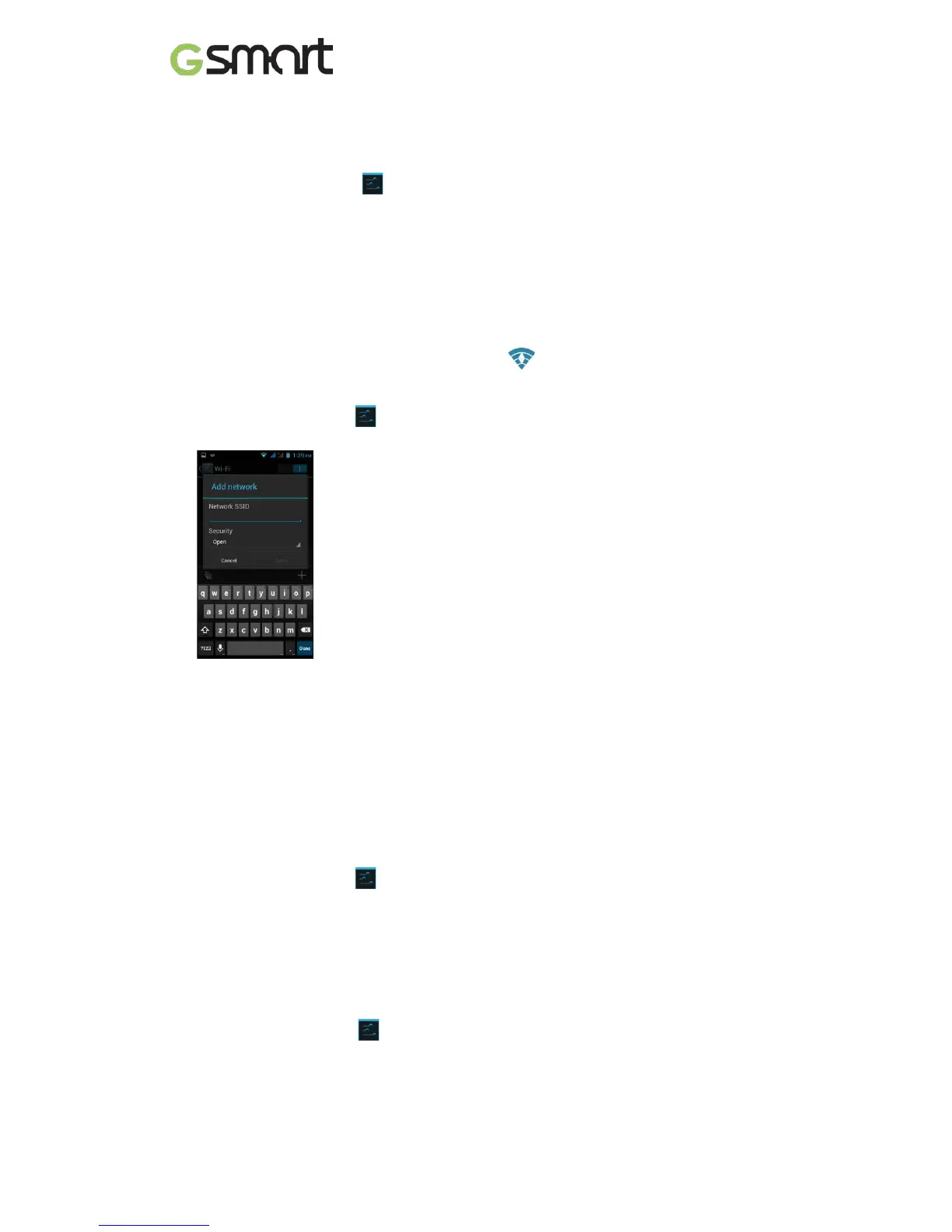 (2) In Wi-Fi screen, tap Menu > ADD NETWORK. An on-screen window will pop-up.