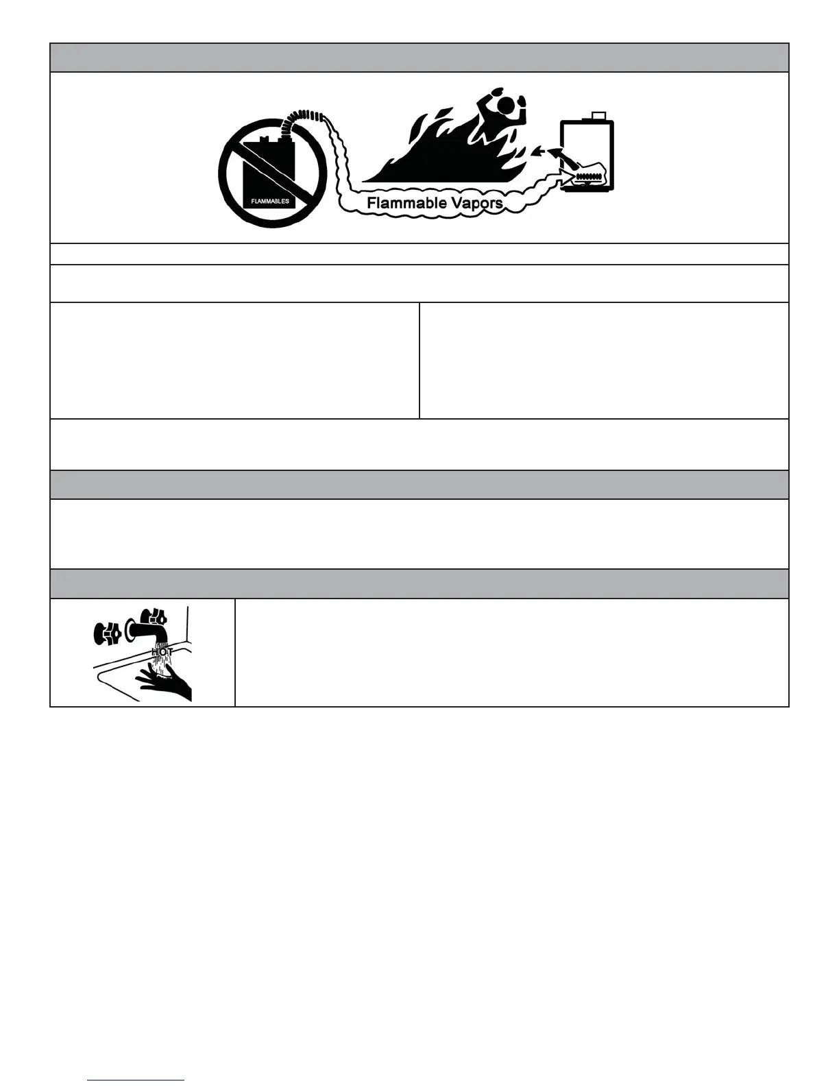 Do not use or store flammable products such as gasoline, solvents or adhesives in the same room or area near the water