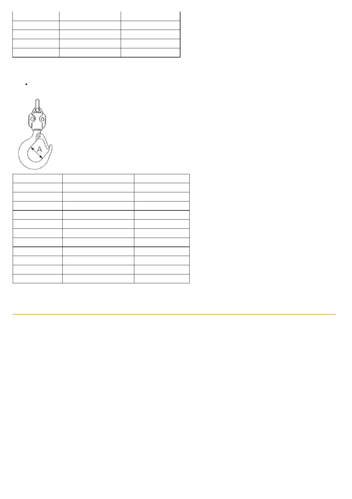 Rated load (kg) Value A on new hook (mm) Limit value A (mm)