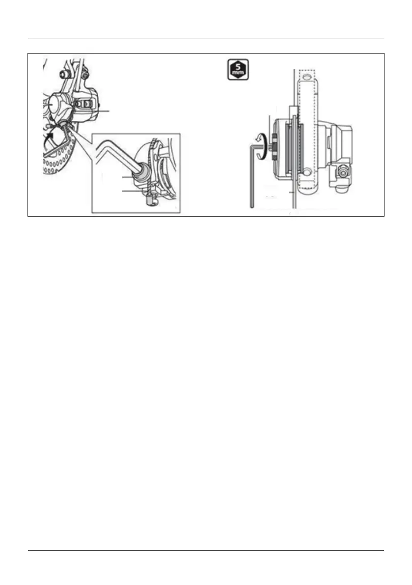brake lever on very firmly with one hand, do not let go. With your other hand use a 5mm allen wrench to