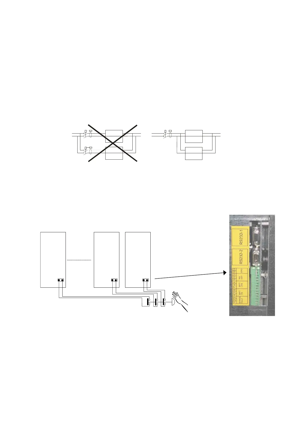 When several devices are connected in parallel, the EPO command must be sent to all UPSs simultaneously, as