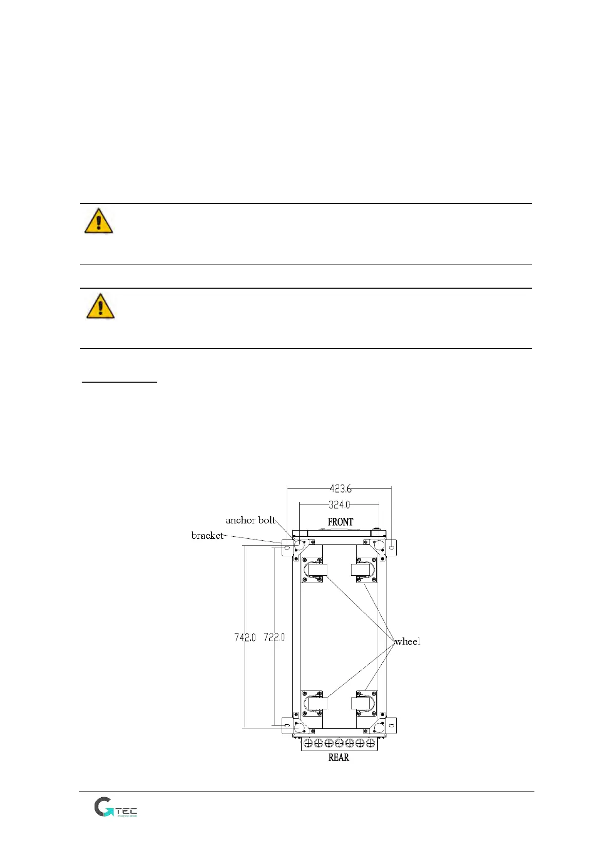 The UPS cabinet has two way of supporting itself: One is to support itself temporarily by the four