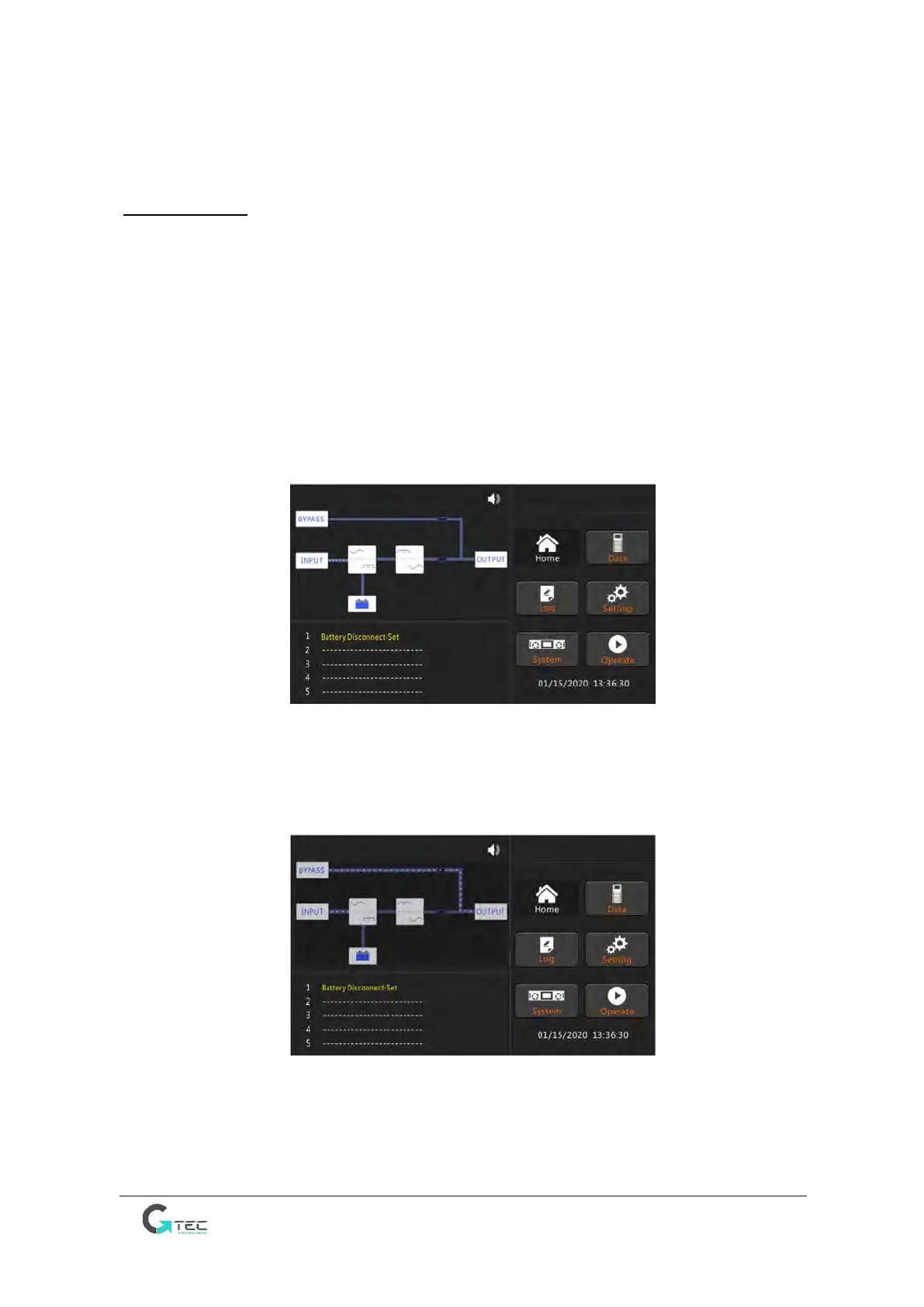 2. Close the output circuit breaker (CB) and then the input CB and the system starts initializing. If
