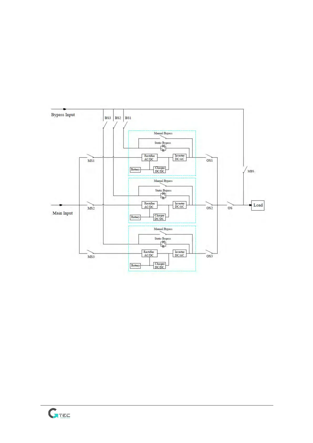 Note: MS1, MS2 and MS3 are the main input switches for each UPS, BS1, BS2 and BS3 are the bypass