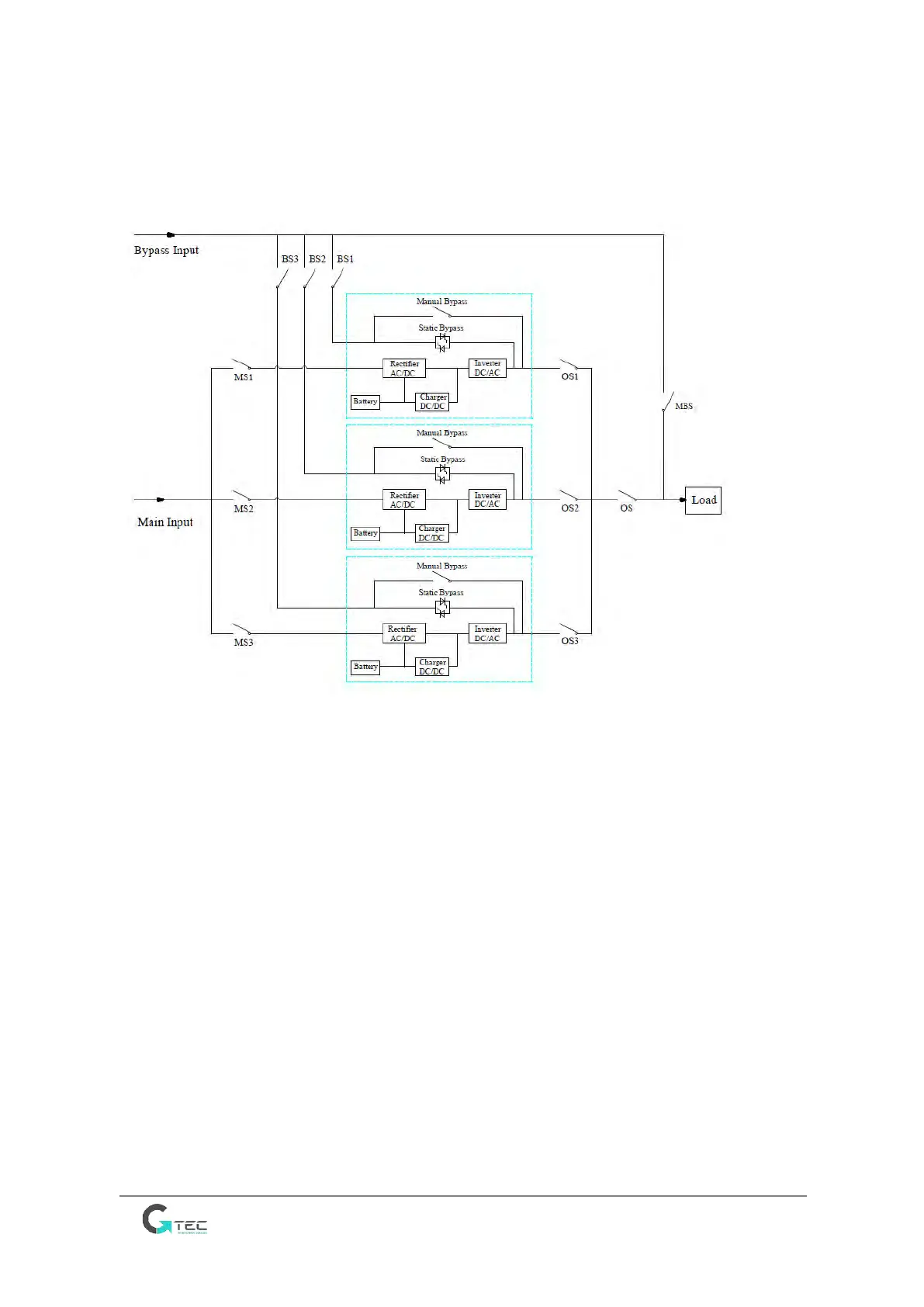 g) Turn off OS1, OS2, OS3 and OS. All UPSs will be off; the load is powered by the maintenance bypass.
