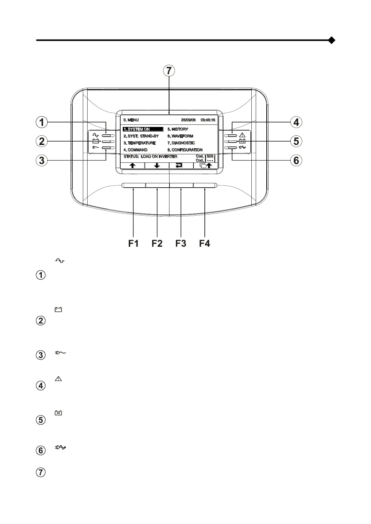 • Leuchtet: Netzbetrieb mit gut funktionierender Bypassleitung und synchrongeschaltetem Inverter
