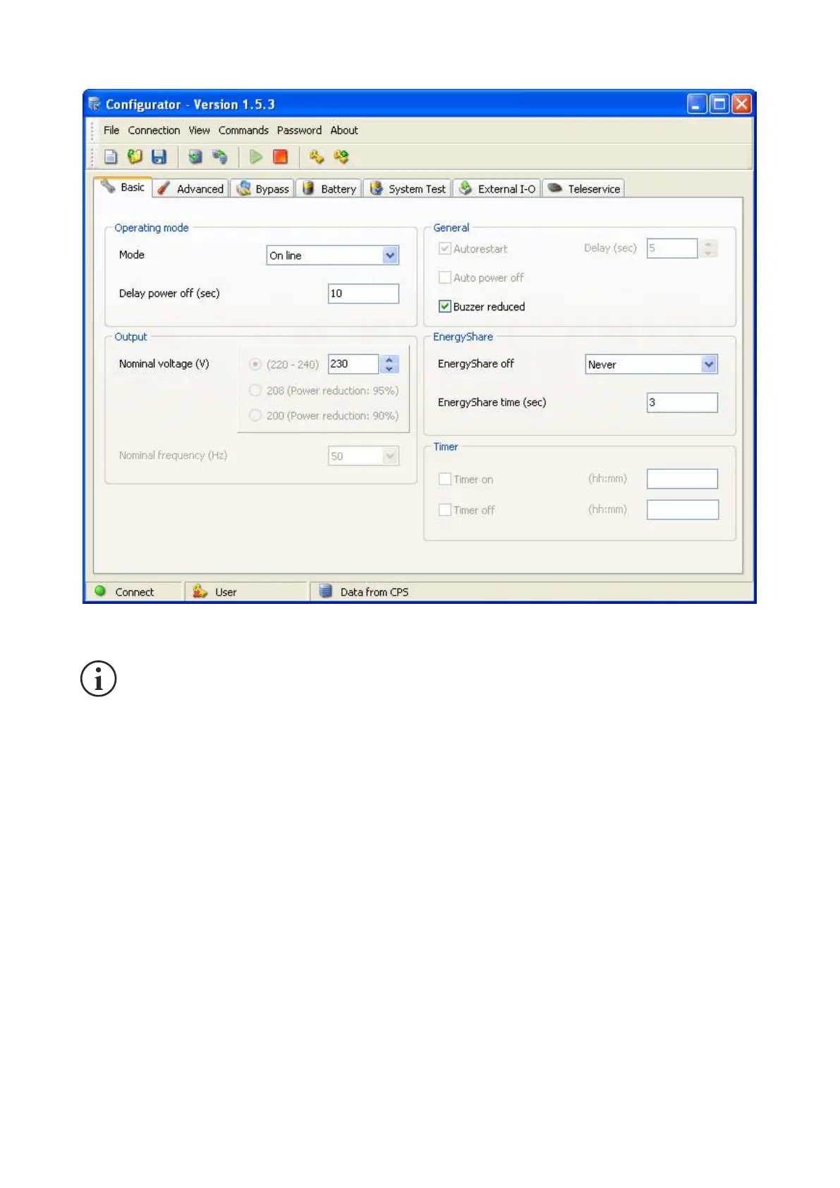 Delay Power Off: Es ist möglich, die Ausschaltverzögerung der durch CPS gespeisten Ladungen